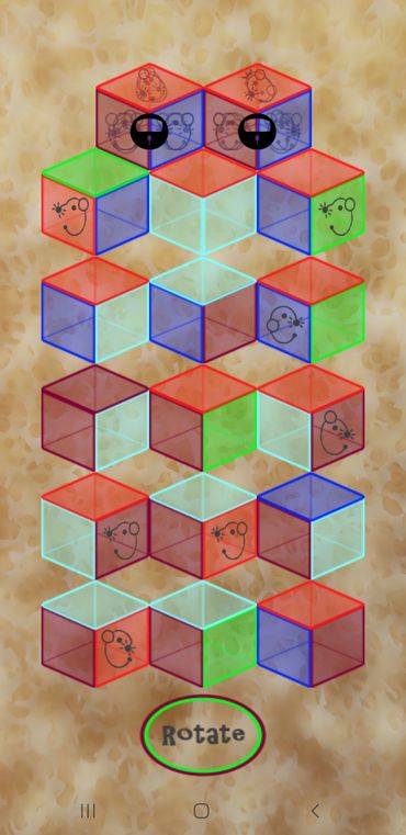 Challenge: Move mice around the cube maze looking for color transitions that will make it possible to match all corresponding cube side colors across all cubes.
